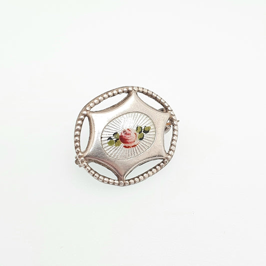 Antique CHARLES HORNER Sterling Silver Enamel Brooch Pin Art Nouveau Rose Blue Oval 1900s Vintage Edwardian Womens Jewelry Jewellery