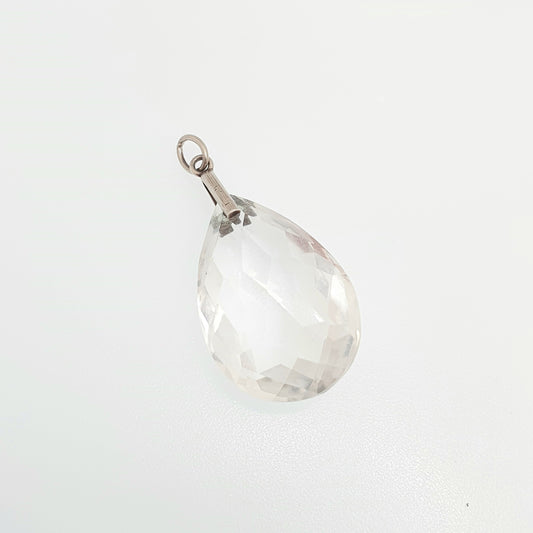 Antique Rock Crystal Quartz Solid Silver Pendant Necklace Art Deco Large Big Faceted 1920s Gemstone Clear Style Womens Jewelry Jewellery