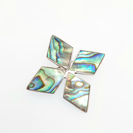 Antique Sterling Silver Abalone Cross Star Brooch Pin New Zealand Shell Mother of Pearl Medal Rainbow Iridescent Womens Jewelry Jewellery