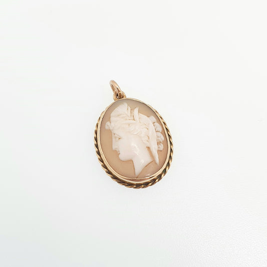 Antique 9ct 9k Gold Victorian Cameo Necklace Pendant Solid 375 Male Bust Oval Rope Border Hand Carved Shell 1800s Vintage Jewelry Jewellery
