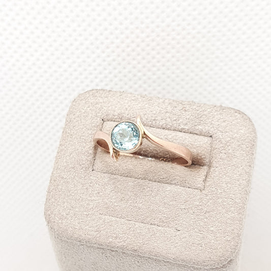 Antique 9ct 9k Gold Aquamarine Paste Ring Edwardian 1900s Solitaire Rose Gold Light Blue Solid 375 Fine Vintage Womens Jewelry Jewellery