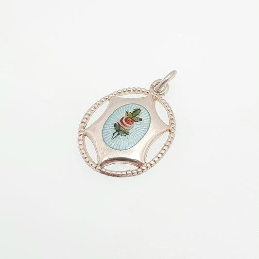 Antique Sterling Silver CHARLES HORNER Pendant Enamel Necklace Sky Blue Flower Champleve Art Nouveau Vintage Jewelry Genuine Jewellery