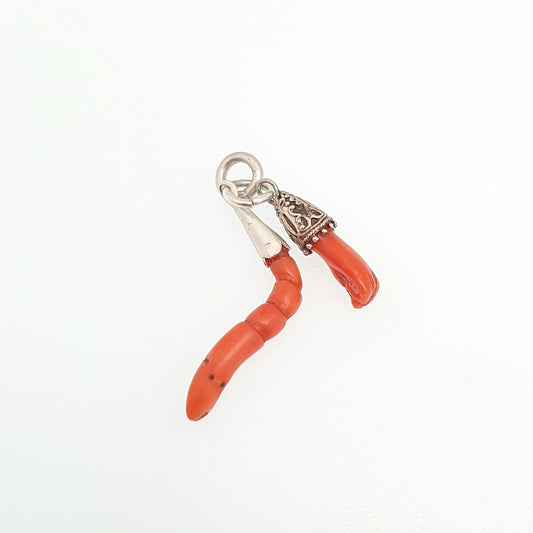 Antique Victorian Coral Hand Fist Snake Necklace Pendant Charm Solid Silver Rare Fine Genuine Real Vintage Womens Jewelry Jewellery