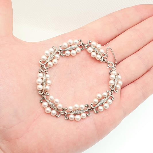 Vintage MIKIMOTO Pearl Bracelet Sterling Silver Cultured Pearls Genuine Real Fine 18cm 7" 18.22g Japanese Japan Womens Jewelry Jewellery