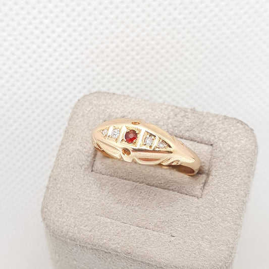Antique 18ct 18k Gold Diamond Garnet Ring 1918 Hallmark Vintage Solid 750 Gypsy 5 Five Stone Genuine Real Gemstone Womens Jewelry Jewellery