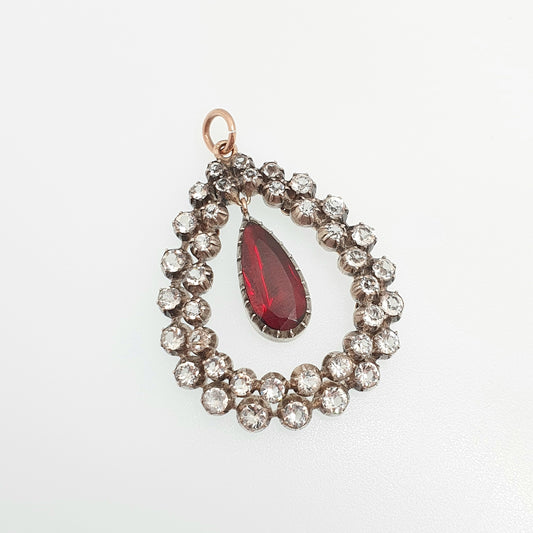 Antique Victorian Solid Silver Garnet & Diamond Paste Pendant 9ct 9k Gold Necklace Pear Cut Fine Estate Sparkly Mid 1800s Jewellery Jewelry