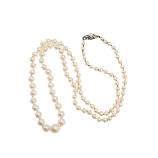Vintage MIKIMOTO Pearl Necklace Sterling Silver Clasp Cultured Japanese Long 54cm 21.2" 13.70g Genuine Real Fine Womens Jewelry Jewellery