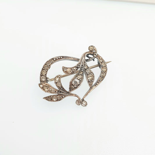 Antique Victorian Solid Silver Diamond Paste Brooch Pin Scroll Flower Late 1800s Sparkly Old Cut Foiled Glass Fine Cute Jewelry Jewellery