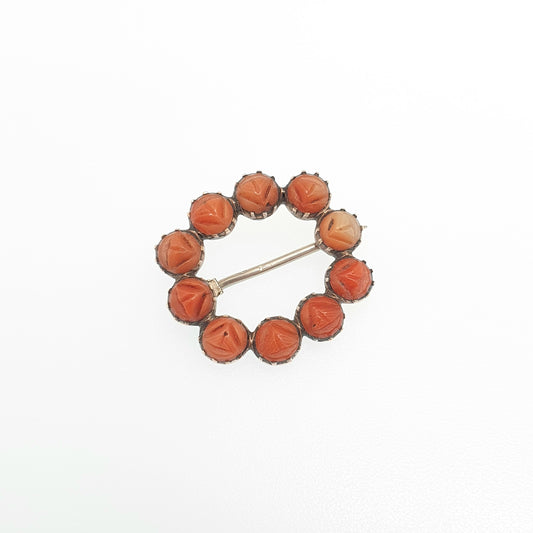 Antique Victorian 9ct Gold Coral Brooch Hand Carved Red Solid 375 9k Flower Mid 1800s Orange Salmon Red Womens Jewelry Jewellery Vintage