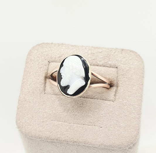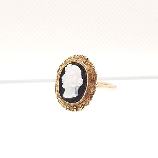 Antique Victorian 14kt Gold Agate Cameo Ring Hardstone Onyx Quartz Solid 14k 585 Gemstone Signet Rose Black Vintage Women Jewelry Jewellery