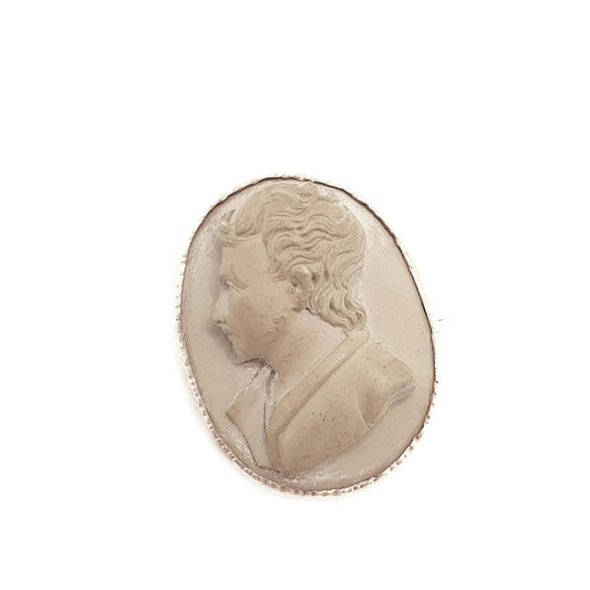 Antique Napoleon Lava Cameo Brooch Solid Silver Bonaparte I 1st Hand Carved French Italian King Rare Unique Fine Vintage Jewelry Jewellery