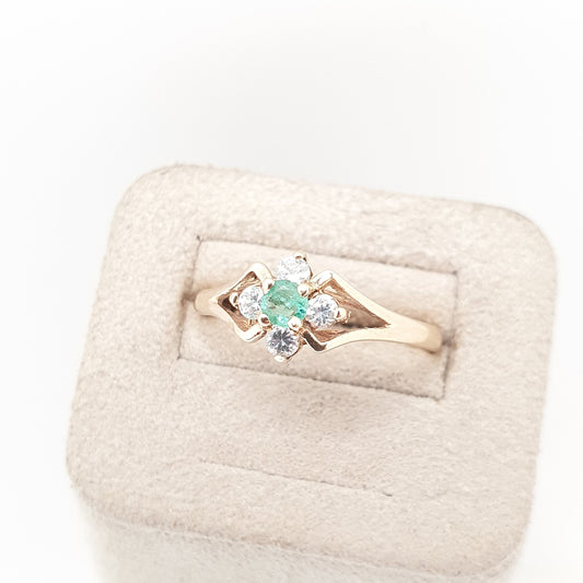 Vintage 9ct Gold Emerald Ring Cluster Halo Solid 375 9k CZ Round Cut Gemstone Fine Estate Genuine Real Retro Womens Jewellery Jewelry