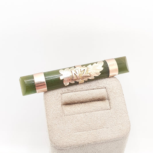 Antique 9ct Gold New Zealand Jade Brooch Victorian NZ Fern Solid 9k 375 Nephrite Maori Yellow Gemstone Jewelry Womens Jewellery Vintage