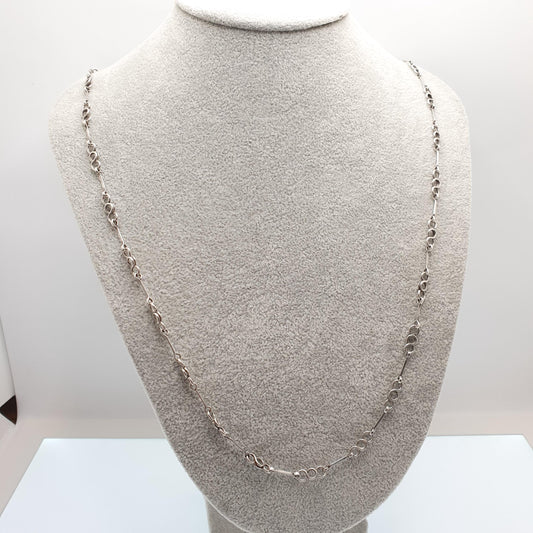 Antique Arts and Crafts Solid Silver Chain Necklace Victorian Bar & Rolo Link 74cm 29.1" 16.01g Long Womens Jewellery Jewelry