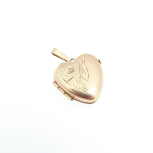 Vintage Solid 9k 375 Gold Heart Locket All 9ct Necklace Engraved Photo Picture Pendant Jewelry Jewellery