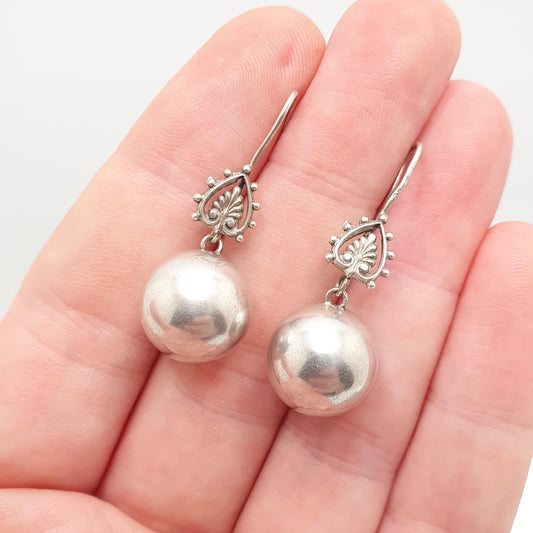 Antique Solid Silver Victorian Ball Earrings Hook Hanging Bead Hook Dangle Drop Genuine 1800s Vintage Jewelry Jewellery