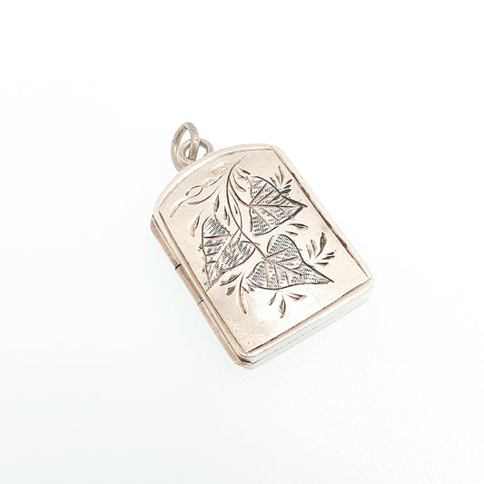 Antique Sterling Silver Locket Rectangular Small 1903 Hallmarked Solid 925 Leaf Engraved Pendant Photo Vintage Jewelry Jewellery