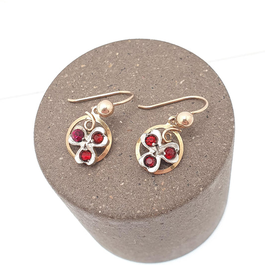 Antique 9ct 375 Gold Clover Earrings Ruby Paste Edwardian Solid Silver Solid 9k 9kt Hook Good Luck Lucky Vintage