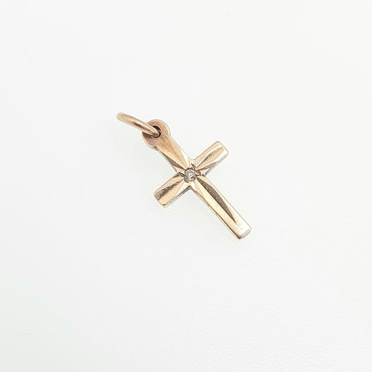 Vintage 9ct 9k Gold Crucifix Charm Bracelet Cross Necklace Pendant CZ Diamond Simulant Solid 375 Christian Catholic Christ Small Tiny