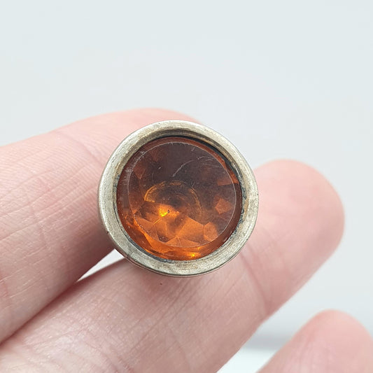 Antique Victorian Silver Tone Citrine Paste Pendant Fob Orange Knot Bail Vintage Womens Jewelry Jewellery