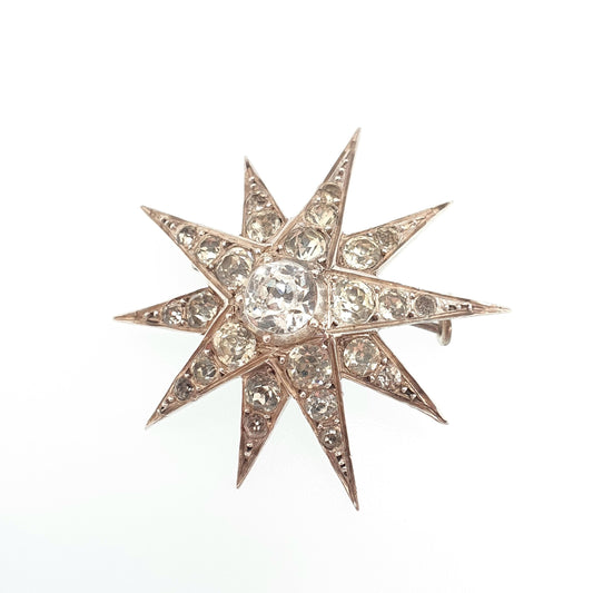 Antique Victorian Star Solid Silver Brooch Diamond Paste Old Cut Large Big Foiled Sparkly Starry Celestial Womens Jewelry Jewellery Vintage