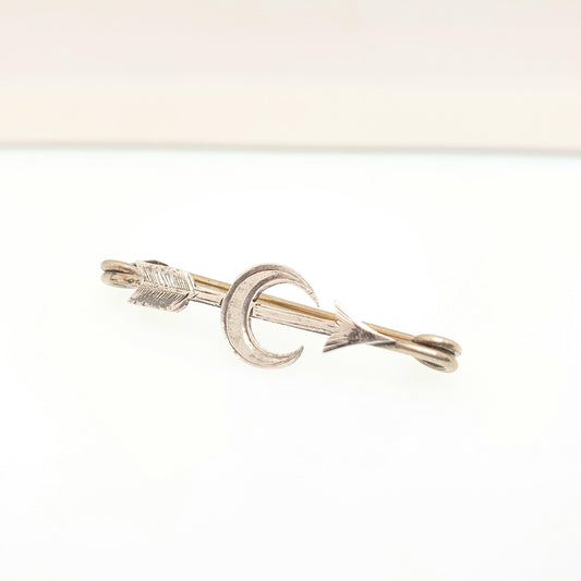 Antique Victorian Solid Silver Arrow Moon Brooch Pin Sagittarius Archer Love Cupid Genuine 1800s Gift Vintage Womens Mens Jewellery Jewelry