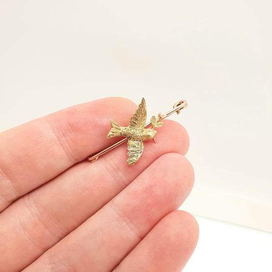 Antique 15ct Gold Swallow Bird Brooch Pearl Dove and Olive Branch Sweetheart Victorian Cute Detailed Solid 9ct 9k Womens Jewelry Jewellery