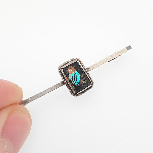 Antique Bird Butterfly Wing Brooch Pin Solid Silver Art Deco Hand Painted Blue Morpho Insect Bug Womens Jewellery Jewelry Old Vintage
