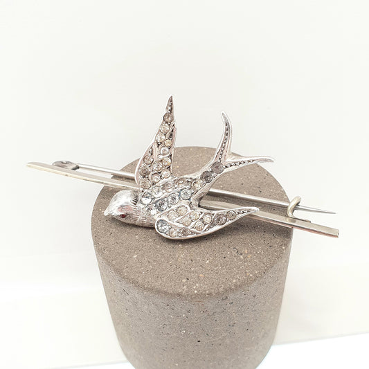 Antique Solid Silver Victorian Paste Bird Brooch Diamond Foiled Pastes Large Big Songbird Swallow Cute Birds Vintage 1800s Ladies Womens