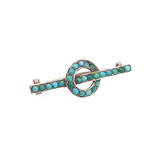 Antique Victorian Solid Silver Turquoise Brooch Circle O 0 Zero Bar Pin Infinity Natural Gemstone Victoria Womens Jewelry Jewellery Vintage