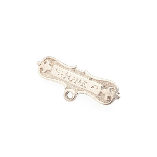 Antique Sterling Silver JUNE Brooch Pin Nurse Watch Fob Bar Birth Month Engraved Solid 925 Jewelry Jewellery Vintage