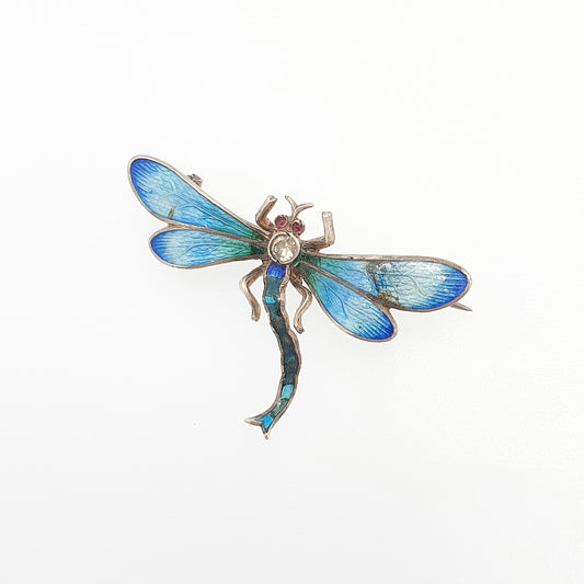 Antique Sterling Silver Dragonfly Brooch Enamel & Diamond Paste Edwardian Insect Fly Vintage Womens Red Jewelry Bug Jewellery