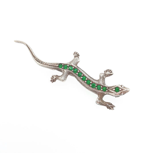 Antique Solid Silver Lizard Brooch Emerald Paste Marcasite Art Deco Reptile Pin Animal Gecko Vintage Green Womens Jewelry Jewellery