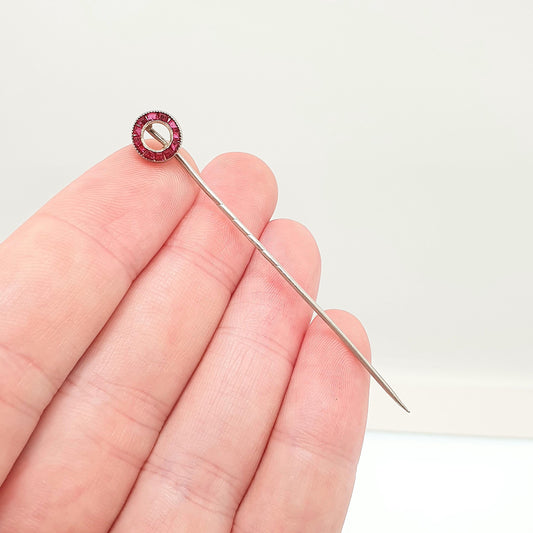 Antique Sterling Silver Ruby Paste Stick Pin Target Polo Donut Channel Set Art Deco Lapel 1920s Vintage Mens Gents Jewelry Jewellery