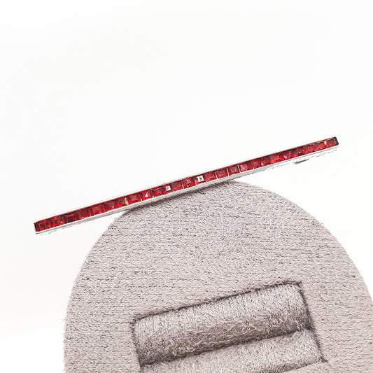 Antique Art Deco Sterling Silver Ruby Paste Bar Brooch Channel Set Square Cut Geometric 1920s Vintage Solid 925 Womens Jewellery Jewelry