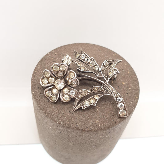 Antique Sterling Silver White Paste Brooch Genuine Art Deco Ciro SCP Floral Spray Flower 1920s Sparkly Vintage Jewelry Jewellery