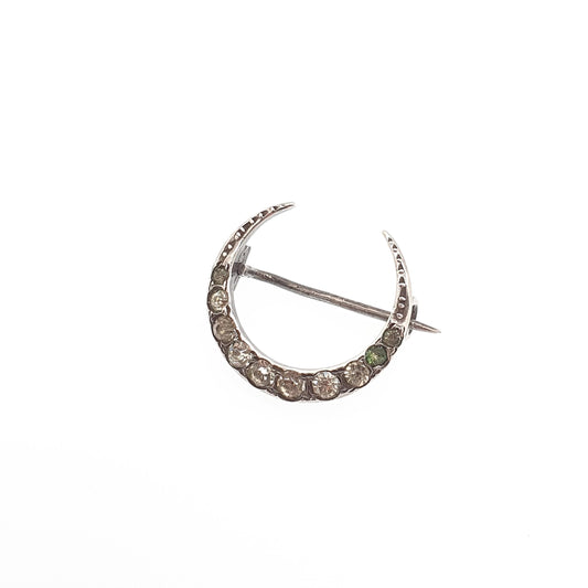 Antique Victorian Sterling Silver Crescent Moon Diamond Paste Brooch Pin Cute Vintage 1800s Gift Unique Celestial Womens Jewelry Jewellery
