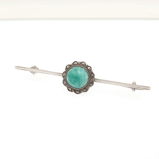 Antique Art Deco Solid Silver Chrysoprase Brooch Marcasite Pin Genuine Gemstone Vintage Flapper 1920s Womens Ladies Jewelry Jewellery