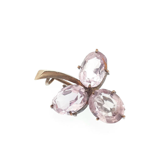 Antique Amethyst Clover Brooch Natural Gemstone Gold Tone Victorian Lucky Irish Oval Cut Purple Quartz Pin Vintage 1800s Jewelry Jewellery