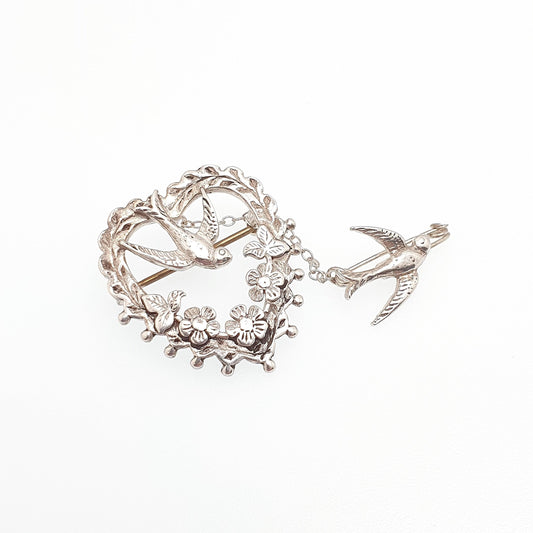 Vintage Sterling Silver Bird Brooch Victorian Style Sweetheart Birds Safety Pin PJM Cute Swallow Swift Gift Pin Vintage Jewelry Jewellery