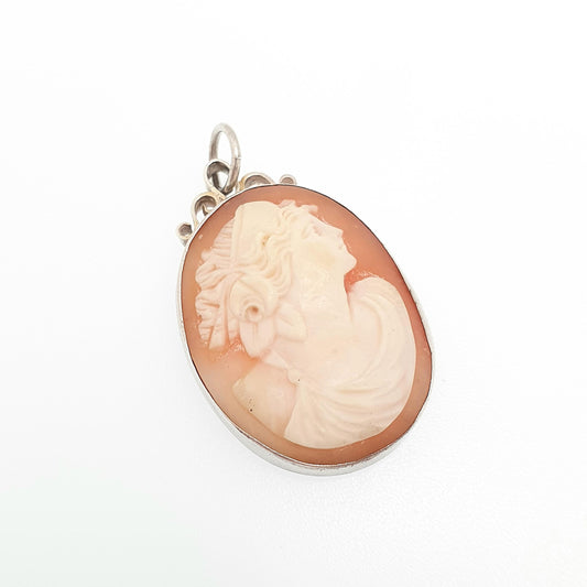 Antique Victorian Solid Silver Aphrodite Cameo Pendant Necklace Venus Goddess Hand Carved Shell Italian 1800s Vintage Jewelry Jewellery