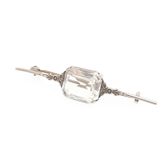 Antique Solid Silver Rock Crystal Brooch Art Deco White Quartz Rectangular Cut Gemstone Clear Vintage Big 1920s Womens Jewelry Jewellery