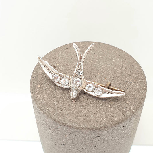 Antique Sterling Silver Bird Brooch Pin Diamond Paste Victorian Cute Sweet Swallow Vintage 1800s Songbird Ladies Womens Jewelry Jewellery