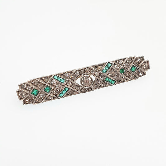 Antique Sterling Silver Emerald Diamond Paste Brooch Art Deco Geometric Channel Cut Vintage Sparkly Flapper Womens Jewelry Jewellery