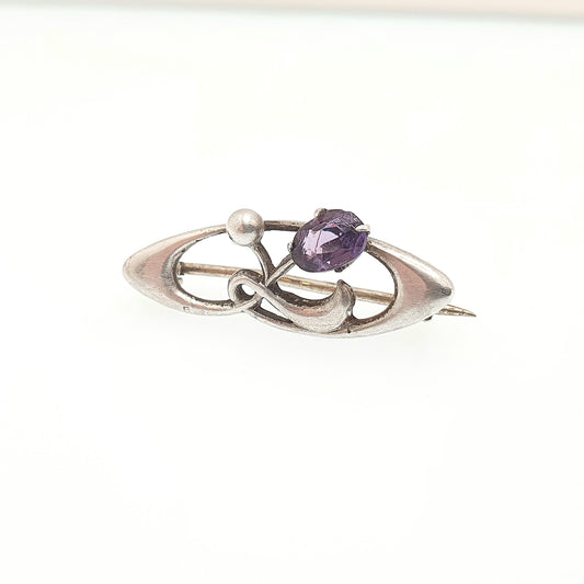 Antique Charles Horner Sterling Silver Amethyst Paste Brooch 1908 Hallmark Art Nouveau Oval Cut Genuine CH Vintage Jewellery Jewelry