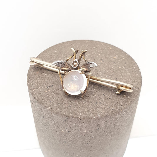 Antique Victorian Moonstone Fly Bug Brooch Genuine Real Blue Adularescence Insect Silver Tone Seed Pearl Vintage Jewellery Jewelry