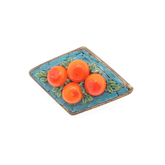 Antique Orange Fruit Micromosaic Brooch Micro Mosaic Fine Gold Gilt Kite Murano Glass Fruits Genuine Italy Italian Vintage Jewelry Jewellery