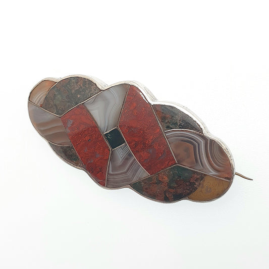 Antique Scottish Sterling Silver Jasper Agate Brooch Knot Mosaic Bloodstone Large Big Hardstone Lace Gemstone Victorian Jewelry Jewellery