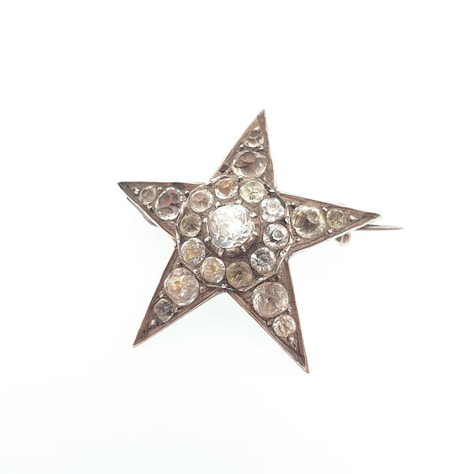 Antique Victorian Star Solid Silver Brooch Diamond Paste Old Cut Five Point Foiled Sparkly Starry Celestial Womens Jewelry Jewellery Vintage