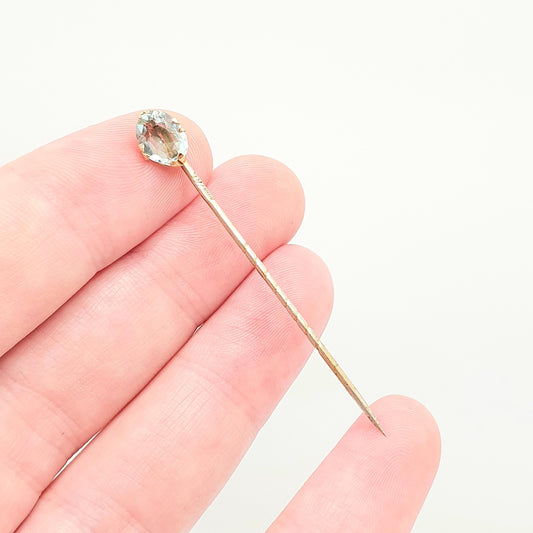 Antique 9ct Gold Aquamarine Paste Stick Pin Victorian Solid 9k Head Oval Cut Lapel Jacket Mens Gents Jewellery Jewelry